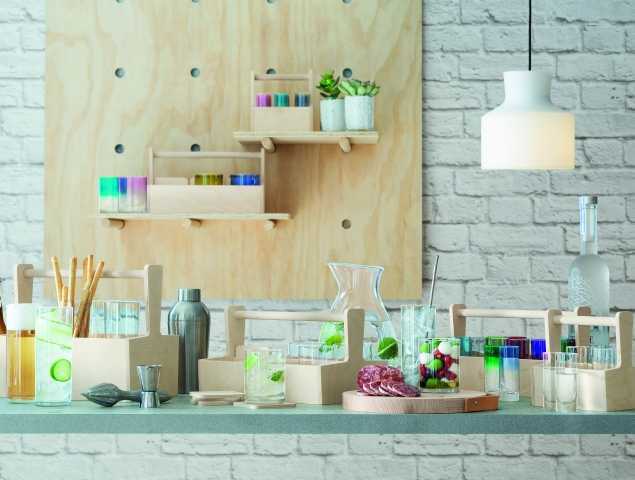 כלי הגשה מזכוכית עבודת יד בשילוב מגשי עץ